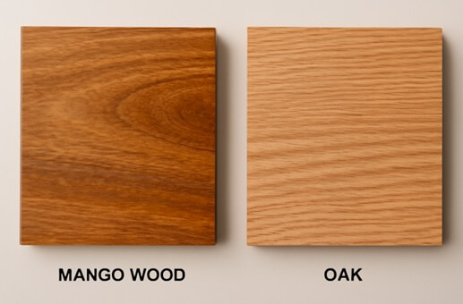 On the other hand, mango wood is lighter and may be easier to work with for intricate designs and detailed craftsmanship. It offers a broader spectrum of colors and grain patterns, providing a more exotic look. Additionally, mango wood is often more affordable than oak, making it a popular choice for budget-conscious consumers.