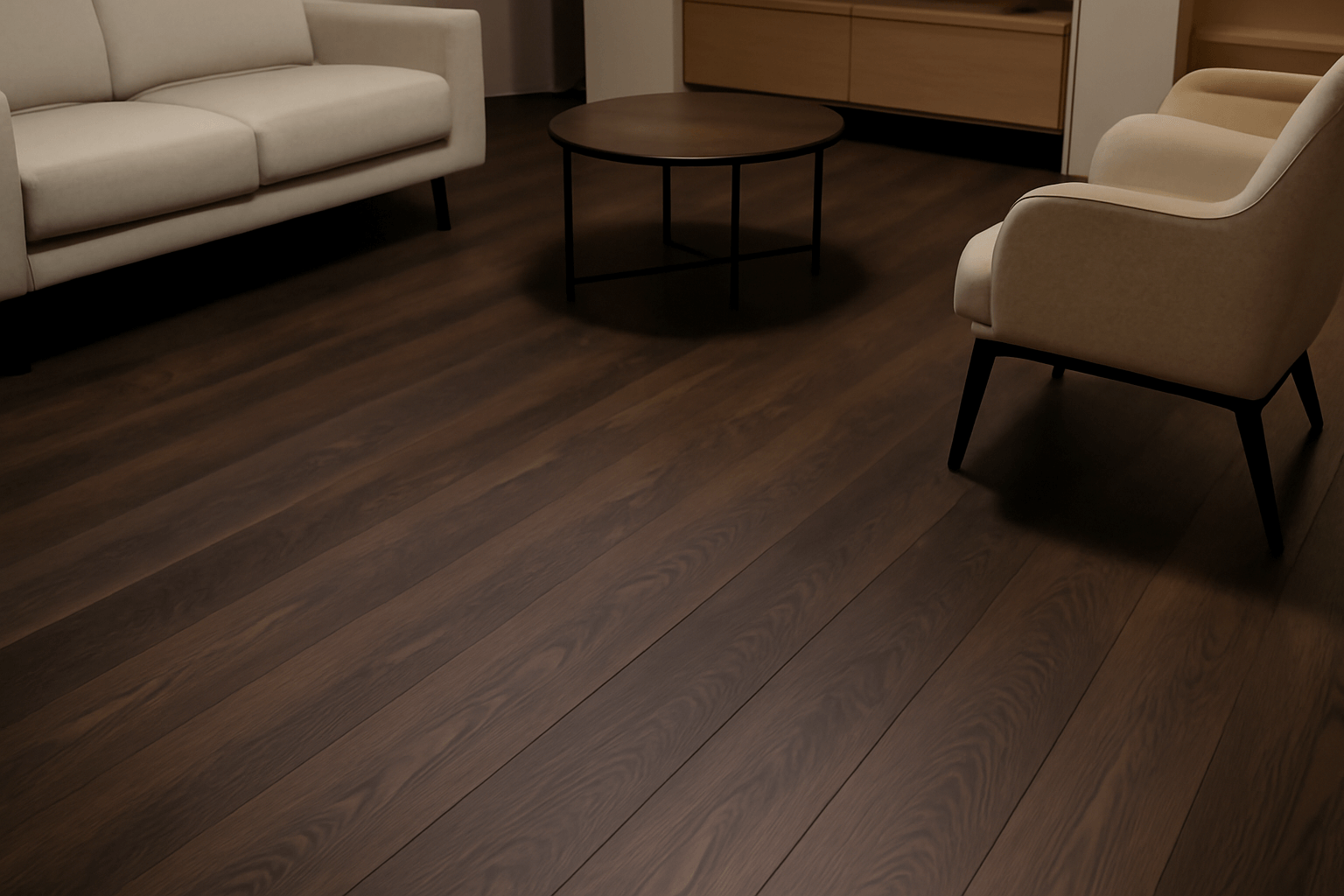 Wenge hardwood flooring represents a premium flooring option featuring the wood's characteristic dark brown-black color and exceptional durability. With its 1,830 lbf Janka hardness rating, wenge flooring withstands heavy foot traffic while providing a sophisticated aesthetic that complements modern interior designs and increases home value.